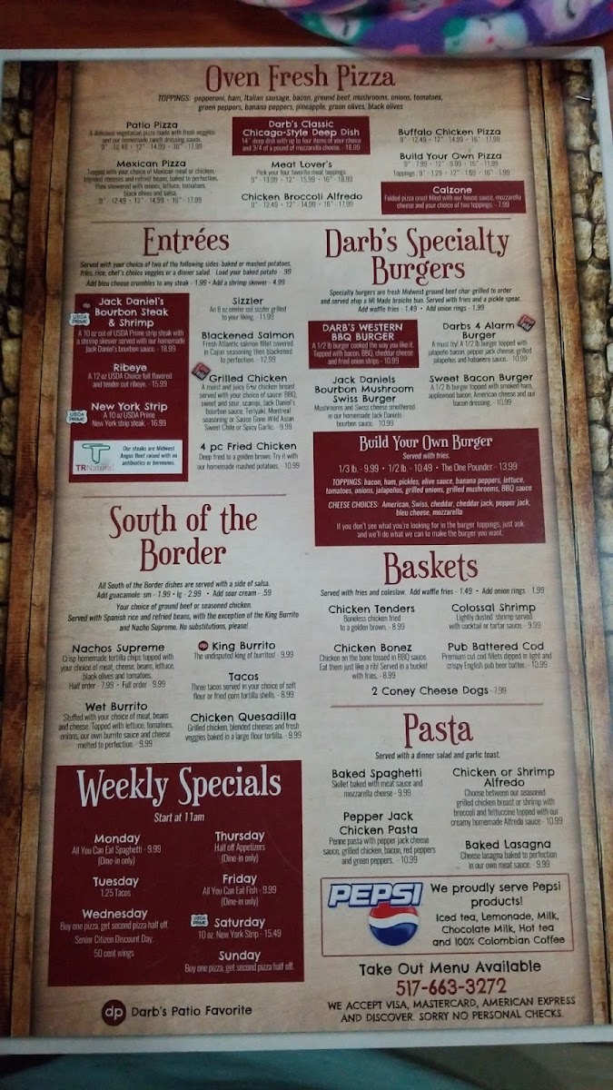 Darb's Patio offers a straightforward, inviting menu that combines classic bar and grill favorites with comforting drinks. Whether you're stopping by for a casual lunch, an afternoon beer, or a relaxed evening meal, you’ll find options that suit a variety of tastes and appetites.